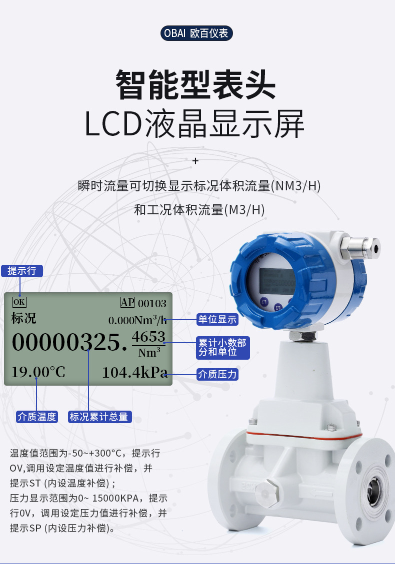 OBLUXB 系列旋進旋渦流量計是用于精準(zhǔn)測量氣體介質(zhì)流量的一種速度式流量計,具有計量精度高、重復(fù)性好、測量范圍寬、安裝簡單、維護方便、使用壽命長、操作使用方便等優(yōu)點。并且儀表考慮到氣體的可壓縮性,體積量與介質(zhì)溫度、壓力的變化將工況流量直接轉(zhuǎn)化為標(biāo)況流量,保證測量的準(zhǔn)確性。